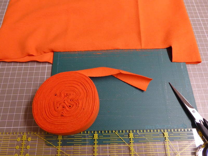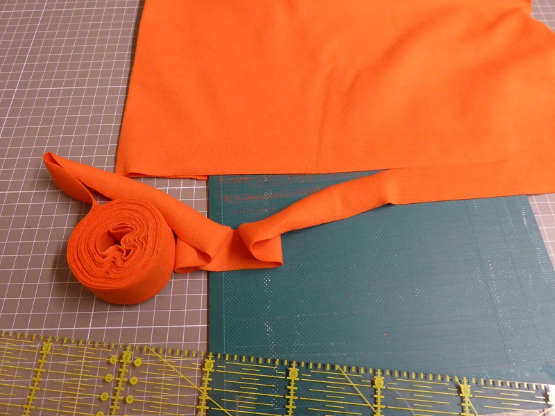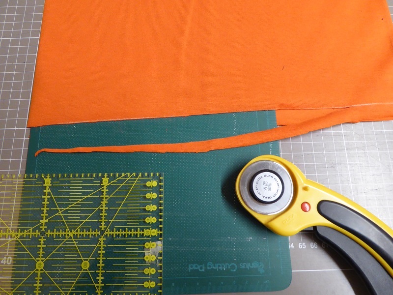 How much…. depends, but usually I cut at least 30 cm of fabric. That makes approximately 6 meters of continous binding tape.