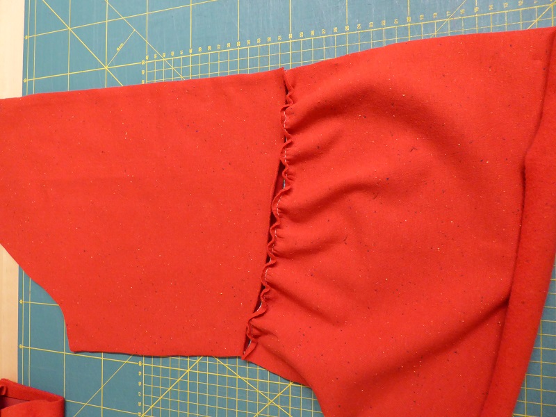 I used my Janome to gather the bottom of the jacket to match the top. This is a winter quality sweatshirt 95/5 cotton elastane fabric and I needed to reduce the bottom part by about 23%.