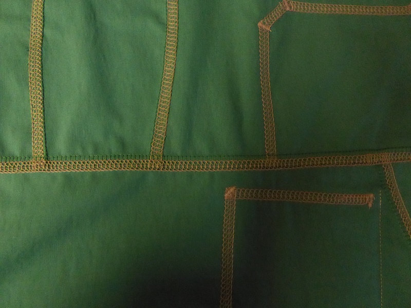 Next the side seams were closed and notice that it is important to accurately match top stitching lines for a continuous effect.