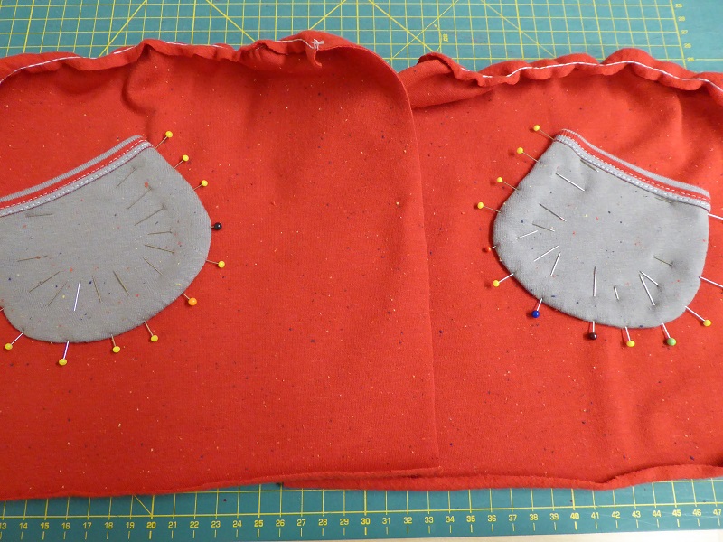 Then I positioned the pockets on the bottom parts of the jacket and I carefully removed the pins and reinserted them through the jacket.
