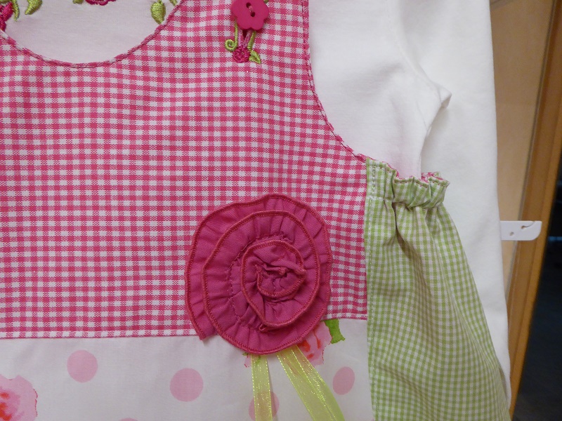 The result is a seam line that is completely covered by the decorative coverstitch looper thread. And in case you ever wondered if adult raglan sleeves pass through the Babylock harp?? They do!!