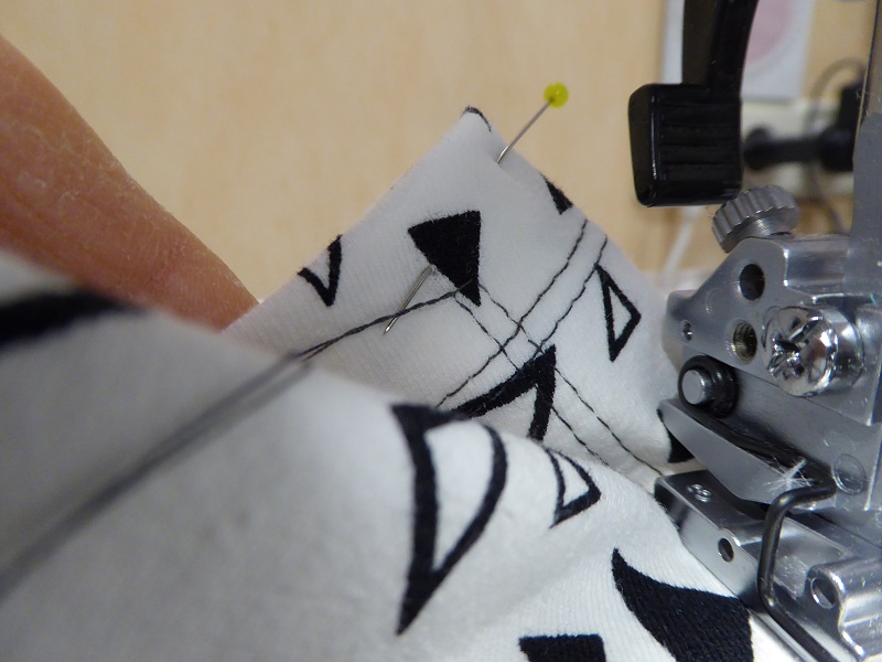 Alternatively, using the seam ripper, I can undo a few of the last stitches, gently pull the needle threads and the looper thread and bingo, I am ready to start over.