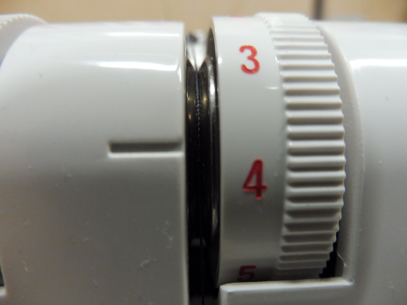 This is what it looks like when the presser foot is down and the thread is not engaged properly between the discs: